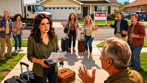Melanie grabbed the brochure box on the sign like it offended her personally. “You can’t sell this house! Where are we supposed to go?”