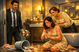 That is when you see it. Not innocence. Not confusion. Calculation collapsing under pressure. Your mother is frightened, but not in the way a shocked bystander is frightened. She is frightened like someone watching a plan fail in real time.
