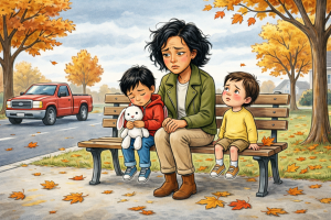 At the time, all I knew was that she had sat on the far end of our bench ten minutes before the truck appeared, pretending to rummage in a canvas tote while she studied my girls’ too-thin jackets, my split lip, and the way I checked the parking lot every time an engine turned over.