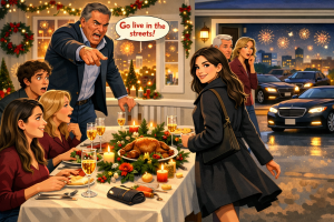 Behind him, the house glowed with warmth. The smell of roast and citrus cleaner drifted out. Somewhere inside, I heard my mother laughing at something—her polite, practiced laugh. The kind that said everything was fine even when it wasn’t.
