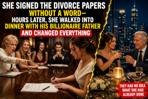 She Signed the Divorce Papers Without a Word—Hours Later, She Walked Into Dinner With His Billionaire Father and Changed Everything