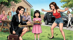 Jenna’s voice cut in, tight and forced. “This is ridiculous. Who just shows up uninvited to a family barbecue and tries to… take a kid?”